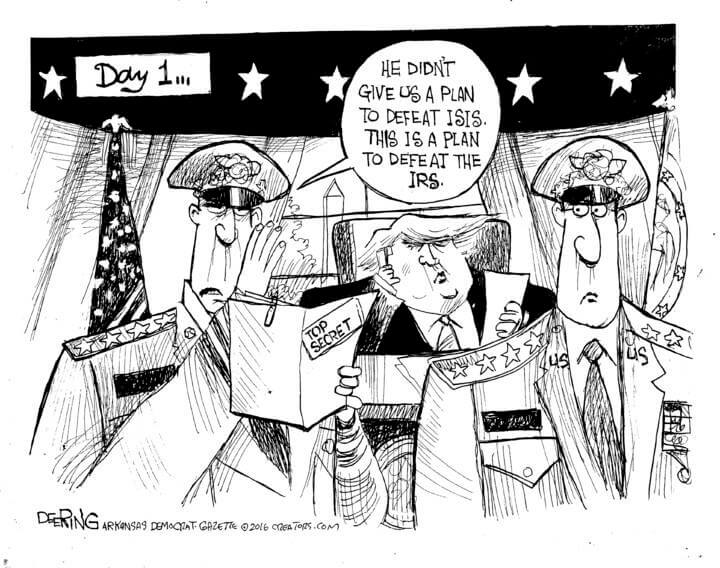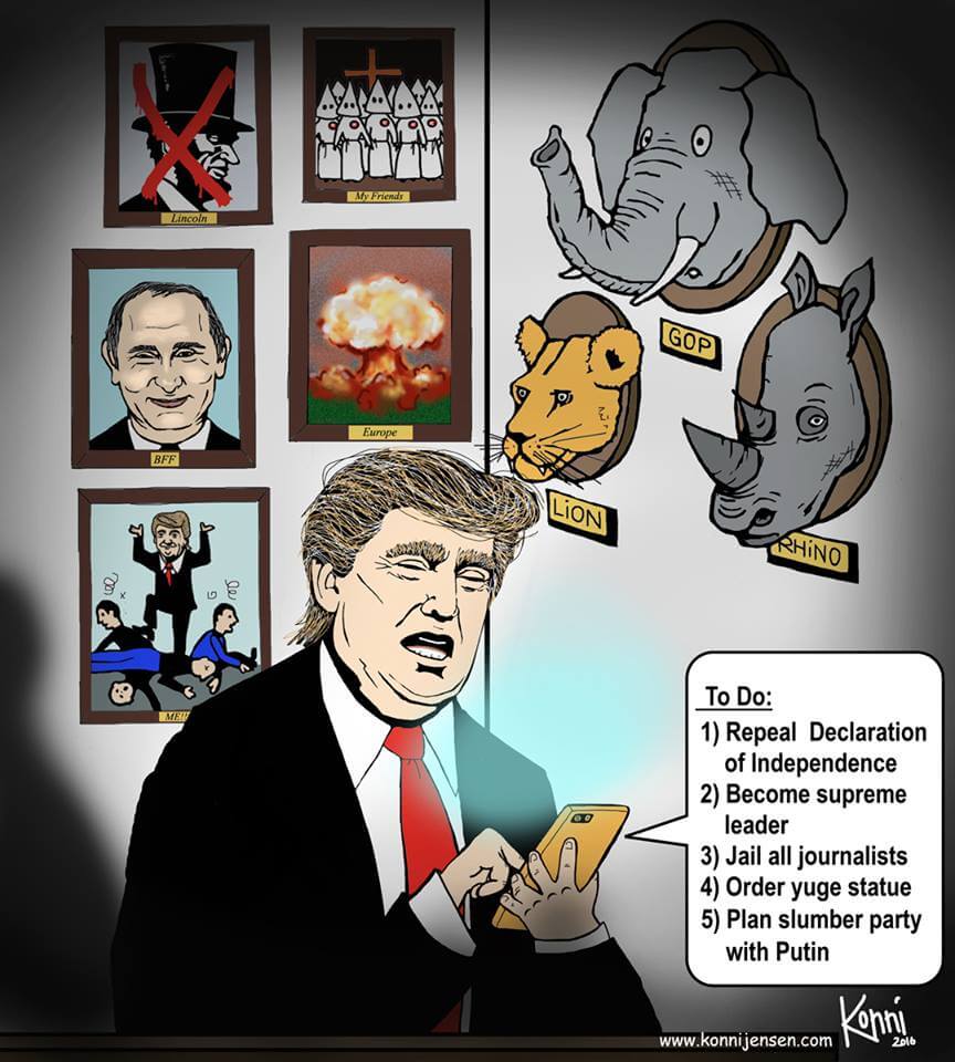 The cartoonists made a few predictions before the election about what they thought a Trump presidency would look like: