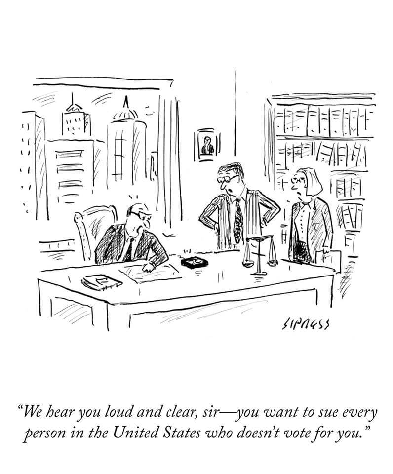 Then there’s all the women who accused him of sexual harassment that he said he was going to sue for slander “after the election.” He didn’t, of course, say which election.