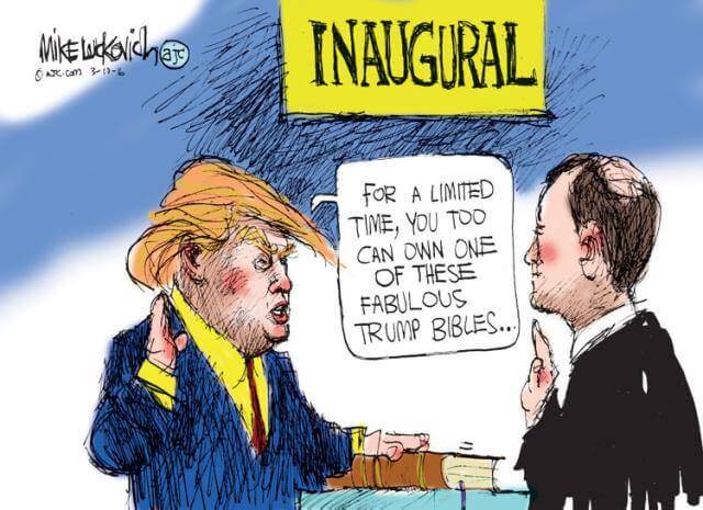 A prediction for Trump’s first day that you may actually approve of: At the conclusion of the oath of office, instead of the customary “So help me God”, he exclaims: Bigly!