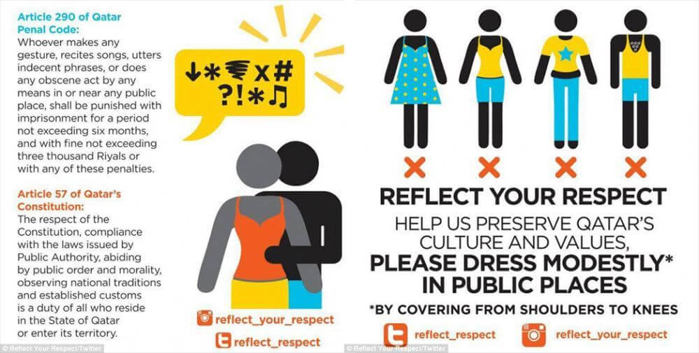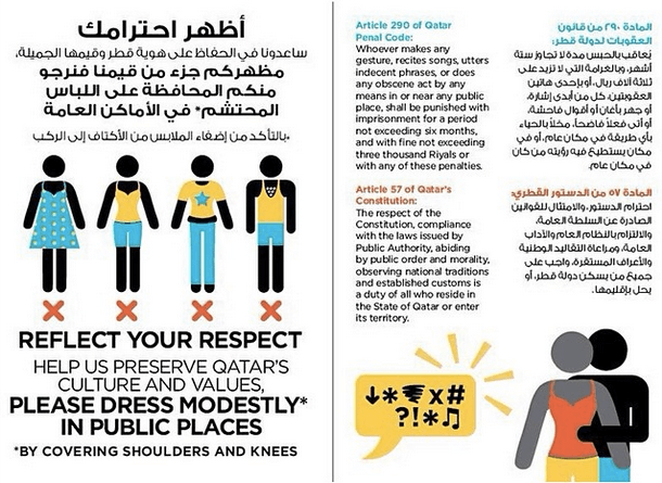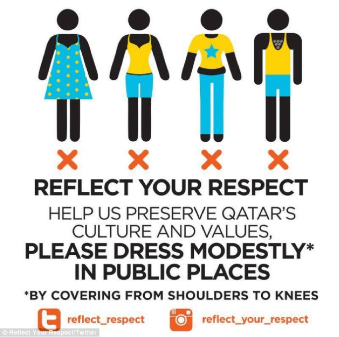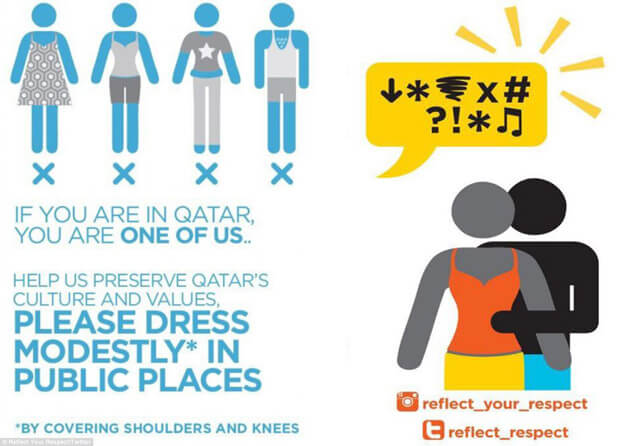 These are some of the posters that you will see around Qatar asking women to cover up: