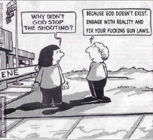 Again, the seeds of both problems are germinated by greed, and religious greed is also a part of the racket; the Xtian right loves the NRA. IMO American exceptionalism is a vast delusion. The fact that we’re raised over here with the credo “our shit don’t stink” creates this type of outcome. An outcome like Trump.