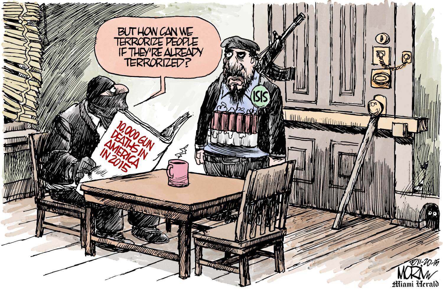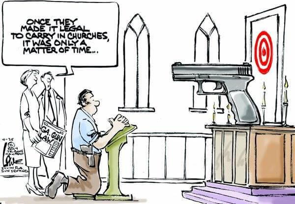 I have literally hundreds of cartoons and memes in relation to guns and the USA. The standard line of those that support the idea of everyone being able to have a gun is, “Only a good guy with a gun can stop a bad guy with a gun.” Therefore, of all of them, I think this one is the best: