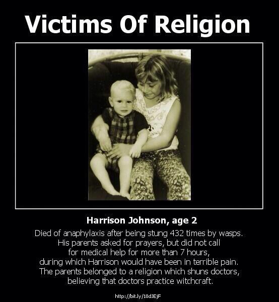 There are at least thousands of children who suffer like this every year – because the parents who are meant to protect them have been brainwashed by religion to believe they can do that through prayer.