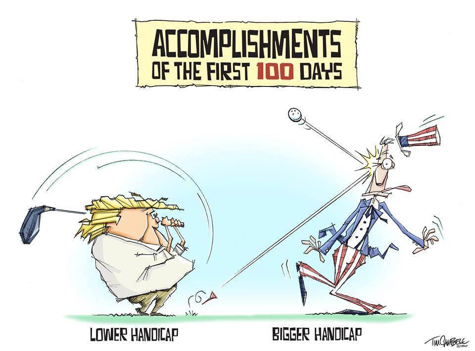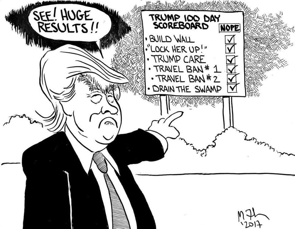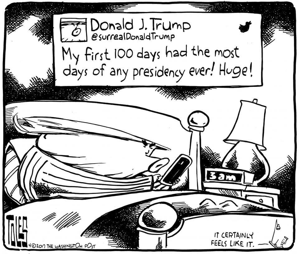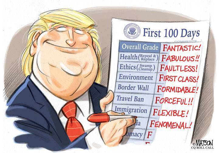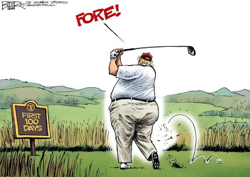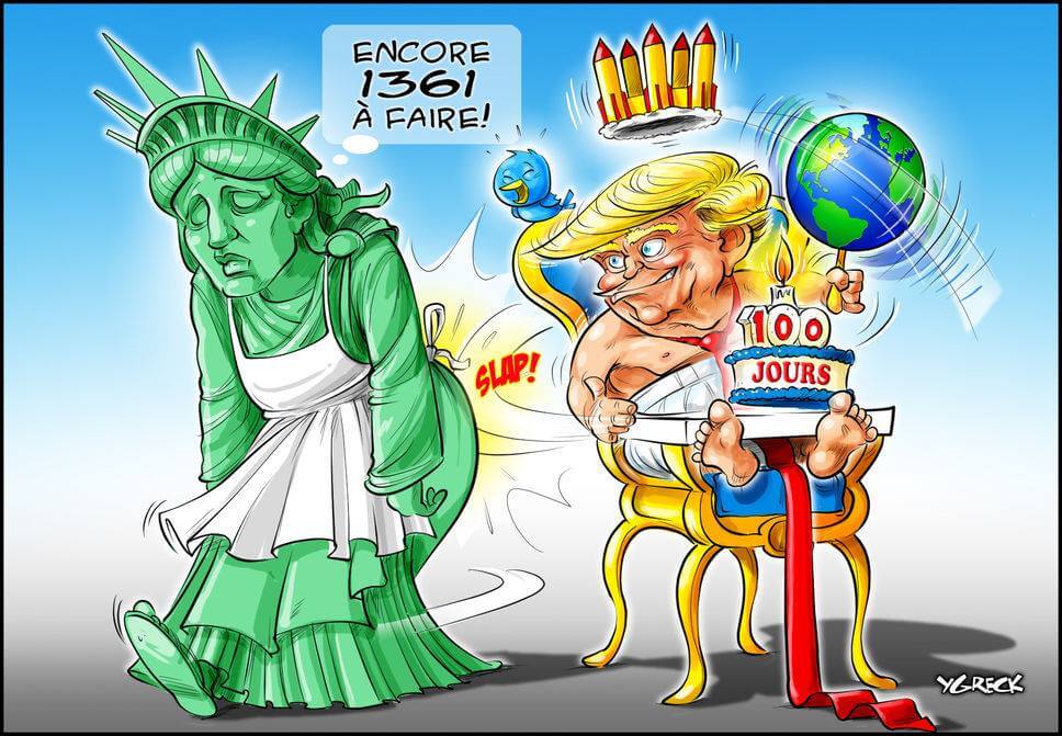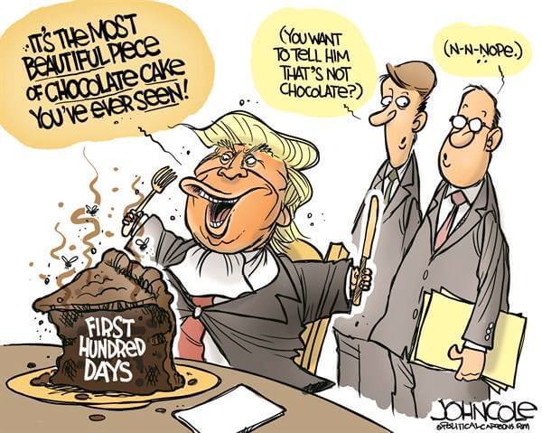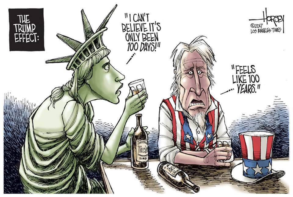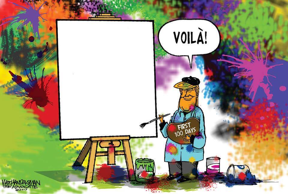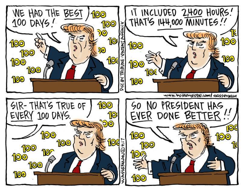Here’s a slideshow of what various US cartoonists (and one French one) came up with for Trump’s first 100 Days.