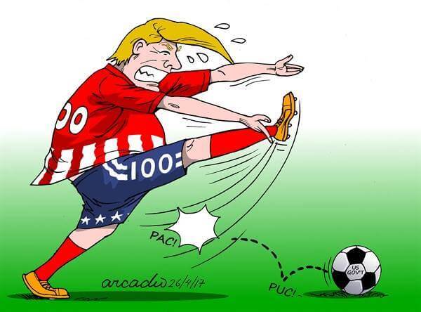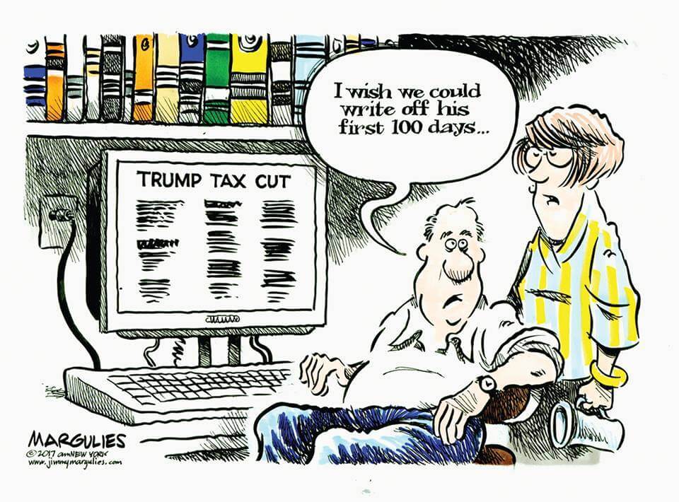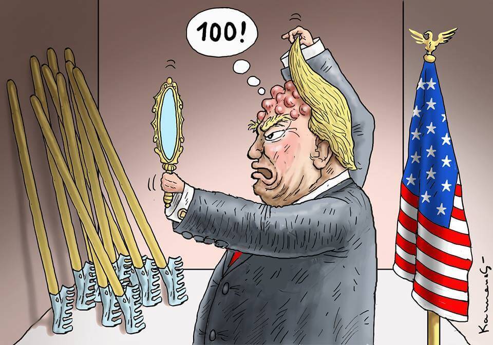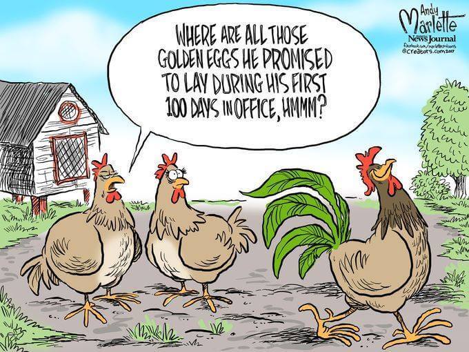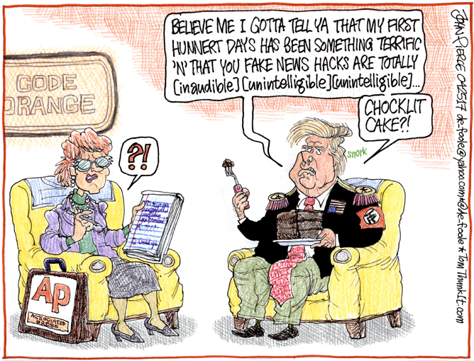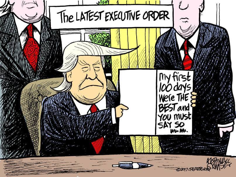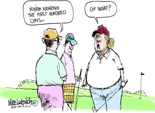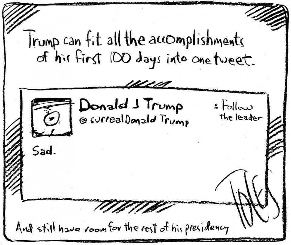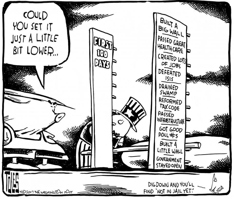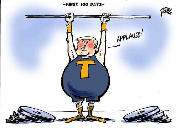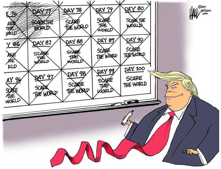 Here’s a slideshow of what various US cartoonists (and one French one) came up with for Trump’s first 100 Days.
