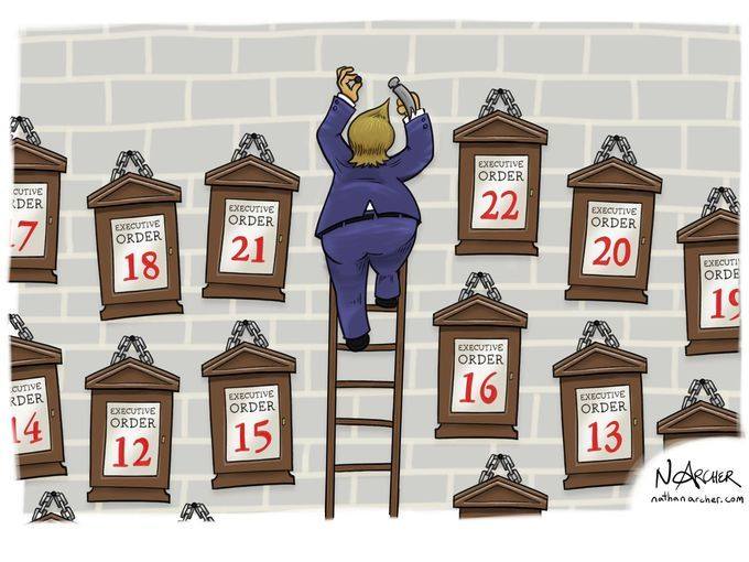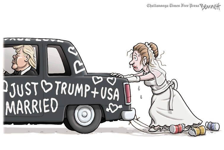 So, I thought I’d present a collection of what US cartoonists came up with to “celebrate” Trump’s presidency.