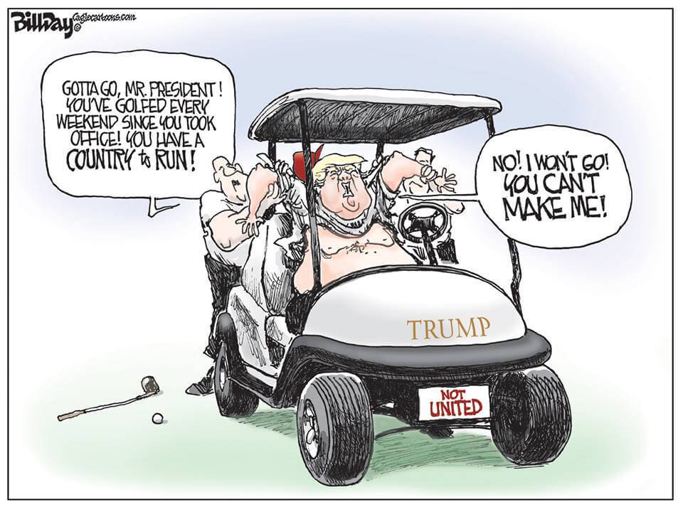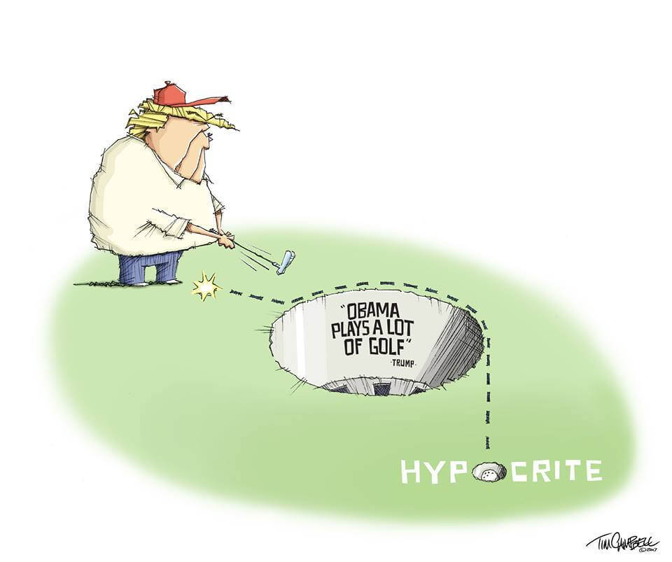 During the Obama Administration, Trump was a constant critic of what he saw as Obama’s constant golf trips when Trump thought Obama should be working. He loudly proclaimed during his campaign that he wouldn’t be playing golf when he was president – he’d be at work in the Oval Office.