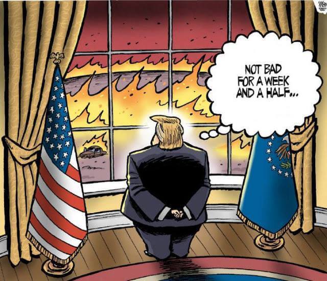 There will come a time when Trump will need the support of leaders like the prime ministers of Great Britain, Canada, and Australia. He will need to be able to persuade his own people to trust him and stand behind him. The longer he carries on lying, bloviating, and whining that everything is someone else’s fault, the harder he will find it to ever get a majority on his side.